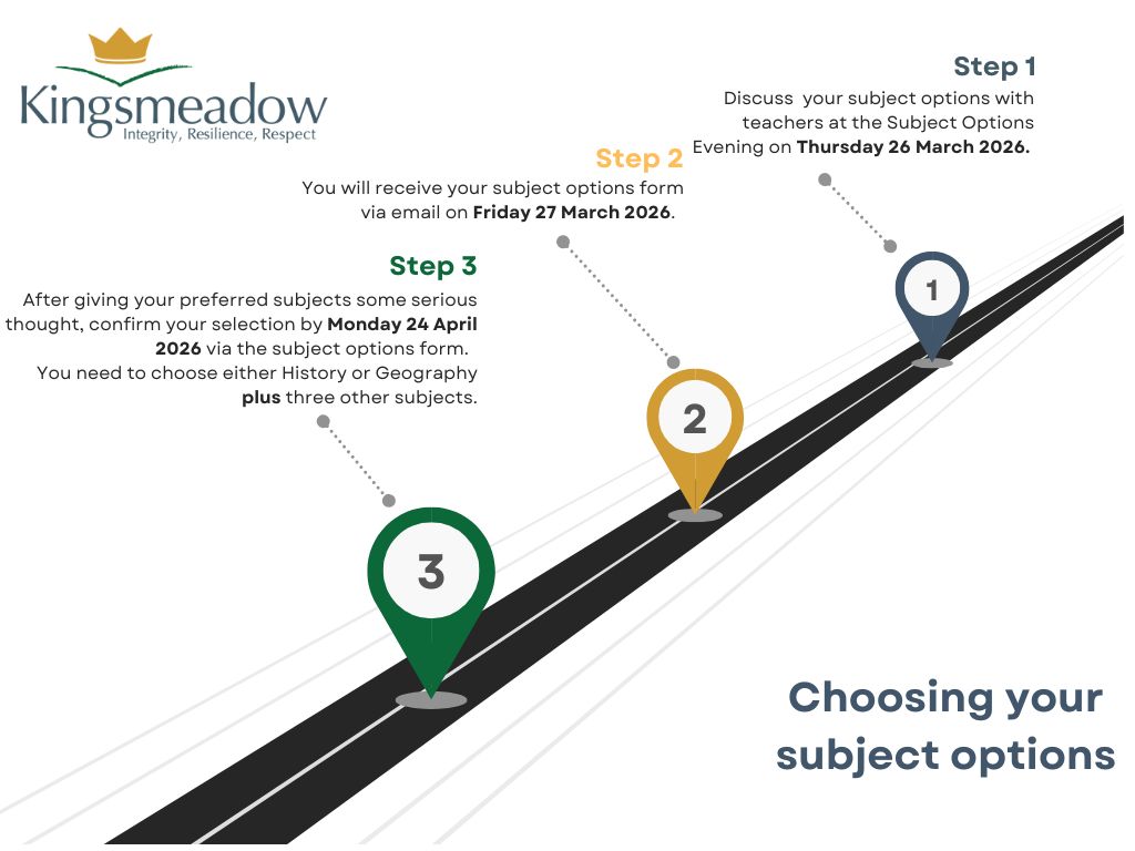 Students will receive online Subject Options by email following the combined Subject Specific and Options information evening which is scheduled for Thursday 26 March 2026. Every effort will be made to give the students their preferred option choices. However, there are occasions when this is not possible because: